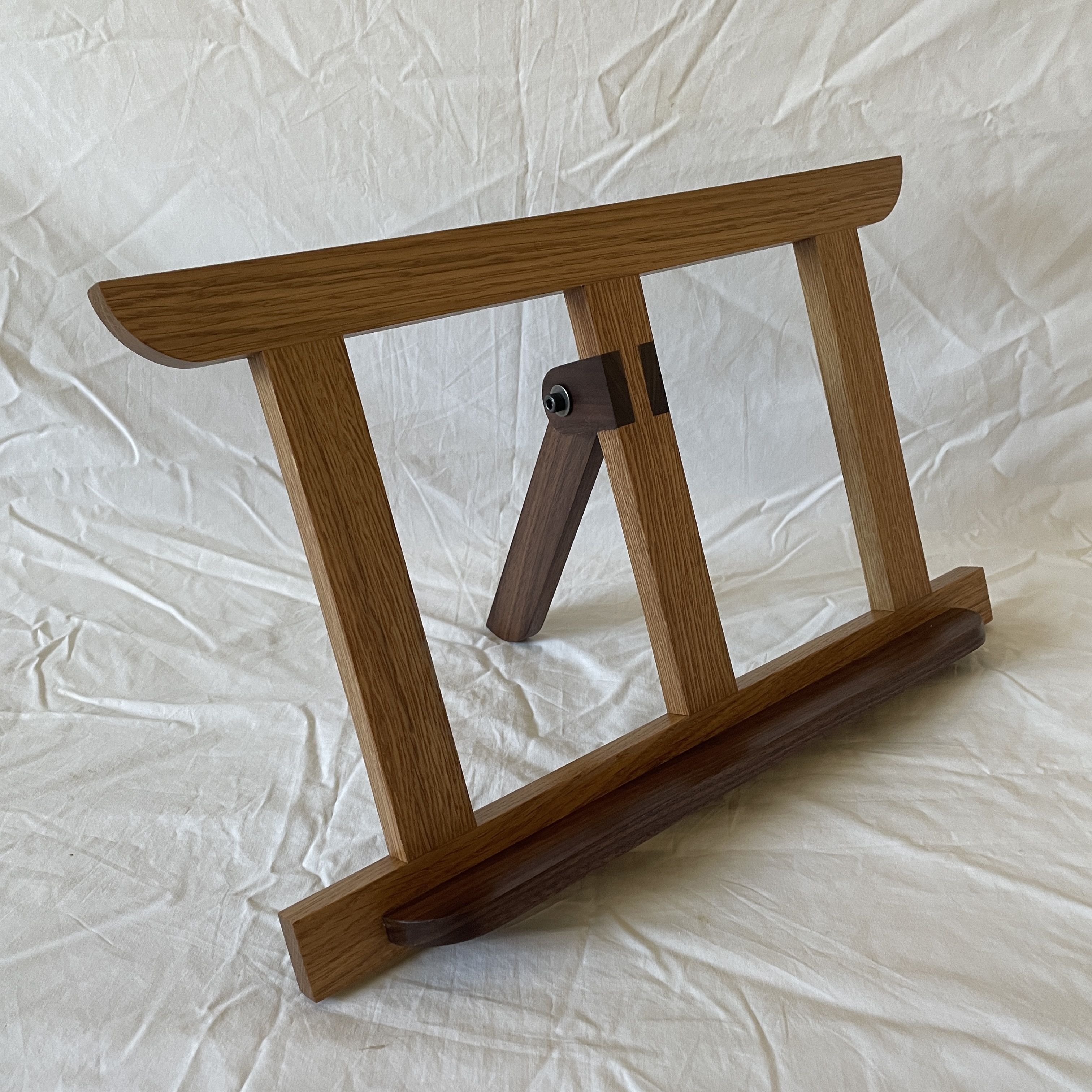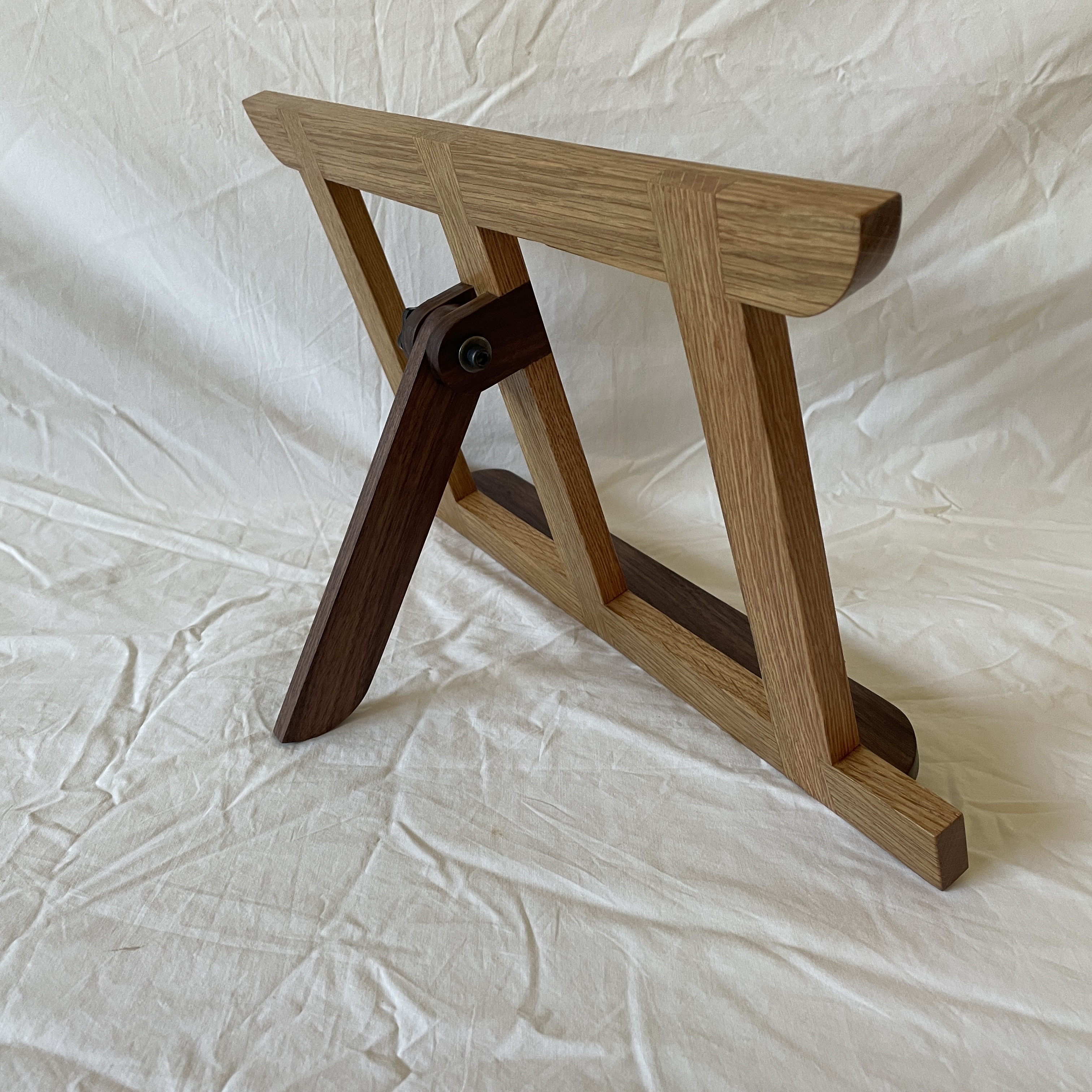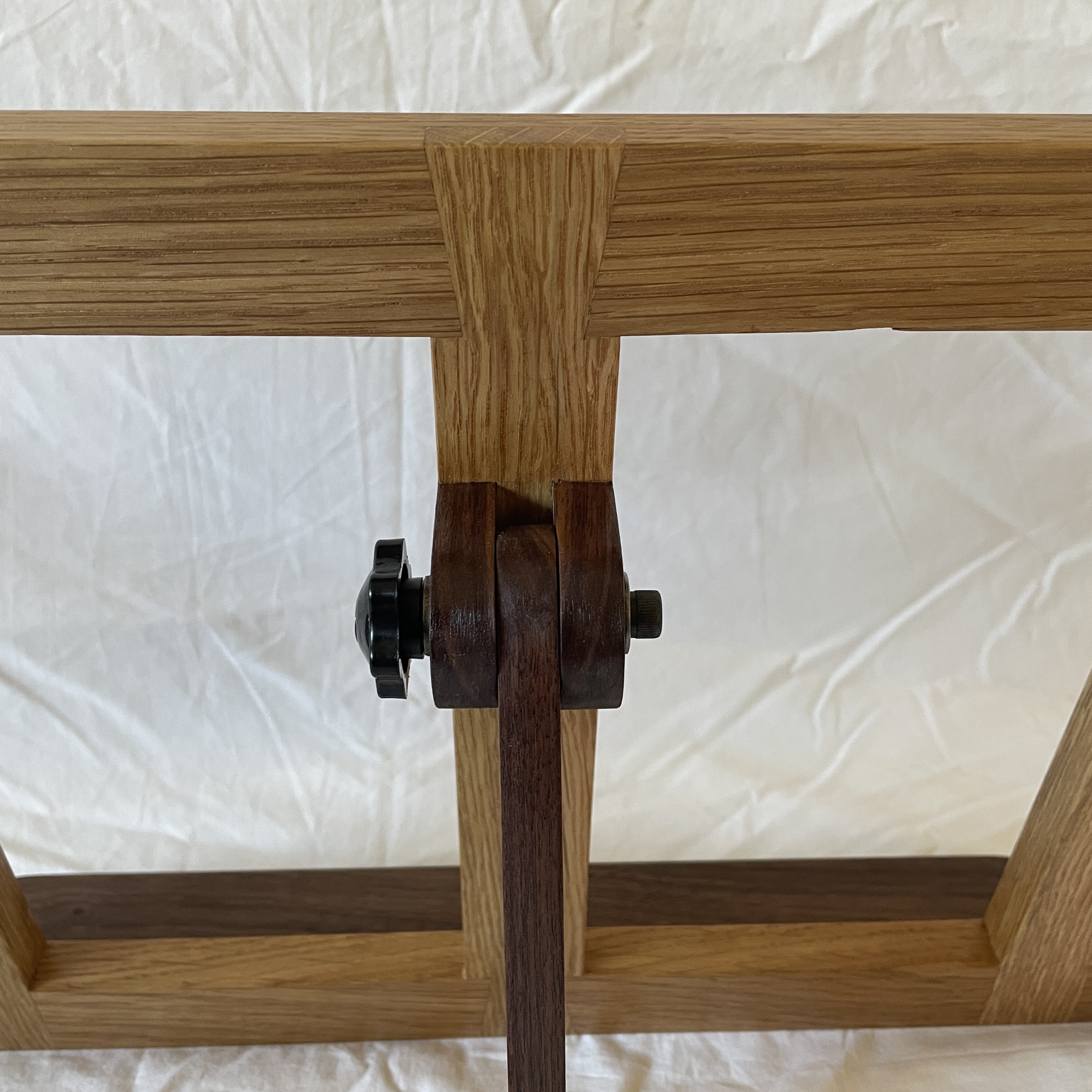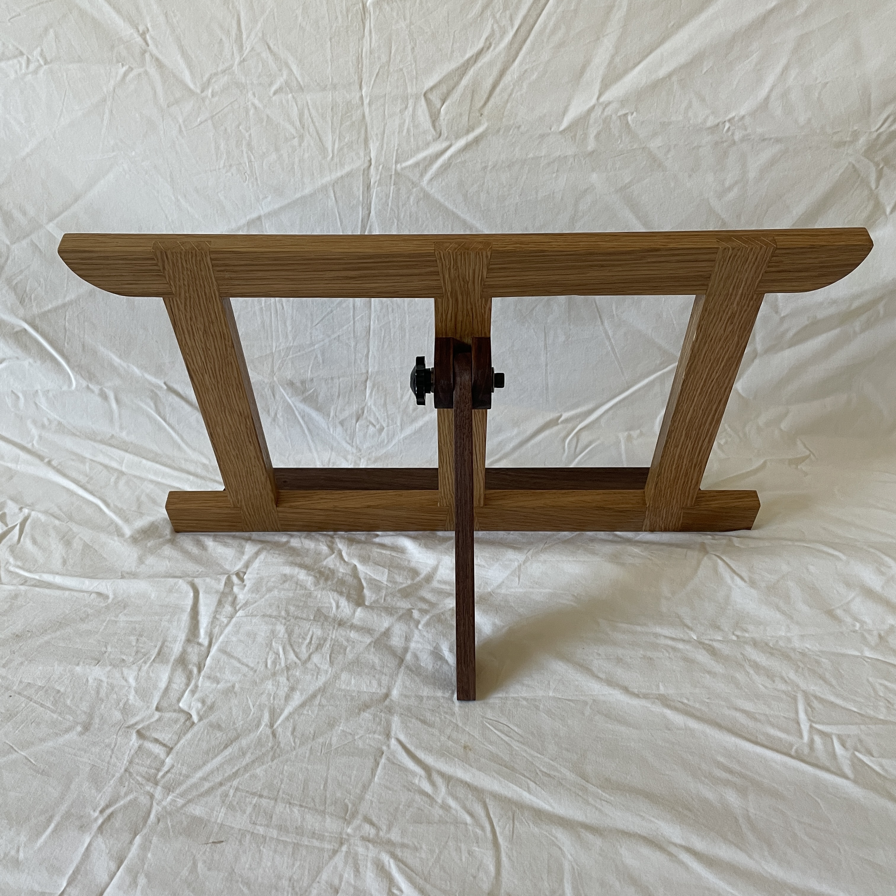 White oak with walnut accents. Dovetailed half laps. Based on a design by Matt Estlea. Completed January 2026.