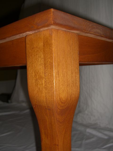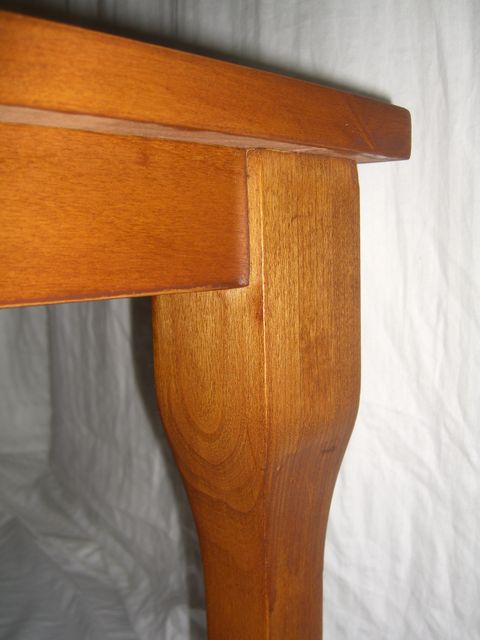 The first hardwood furniture project of my own design. Mortise and tenon joinery. Original profile on legs. Built from alder and finished with a light stain and many coats of wax.